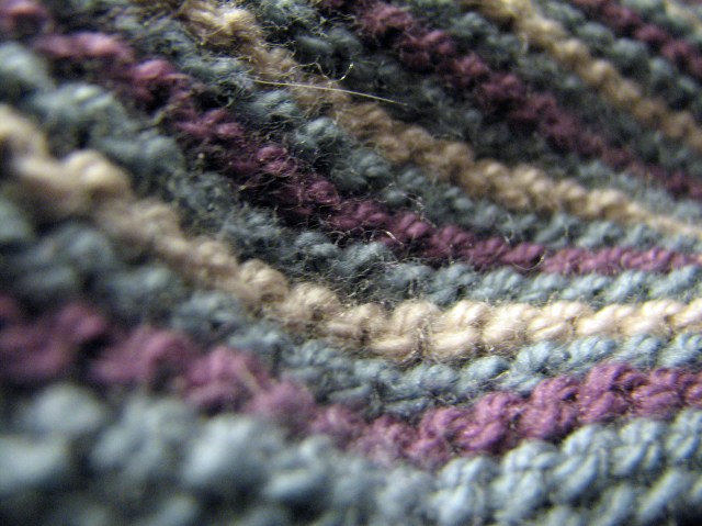 I love Mission Falls yarn. It’s so soft and cushy, and it’s a machine washable 100% wool. This is now a baby hat.